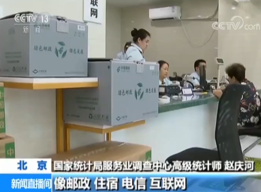 国家统计局服务业调查中心高级统计师 赵庆河:业务总量增长较快的一些行业,比如像零售,航空运输,像邮政、住宿、电信、互联网,还有银行,这些行业的商务活动指数都是在55%以上的一个较高景气区间,业务总量也实现了一个较快增长。